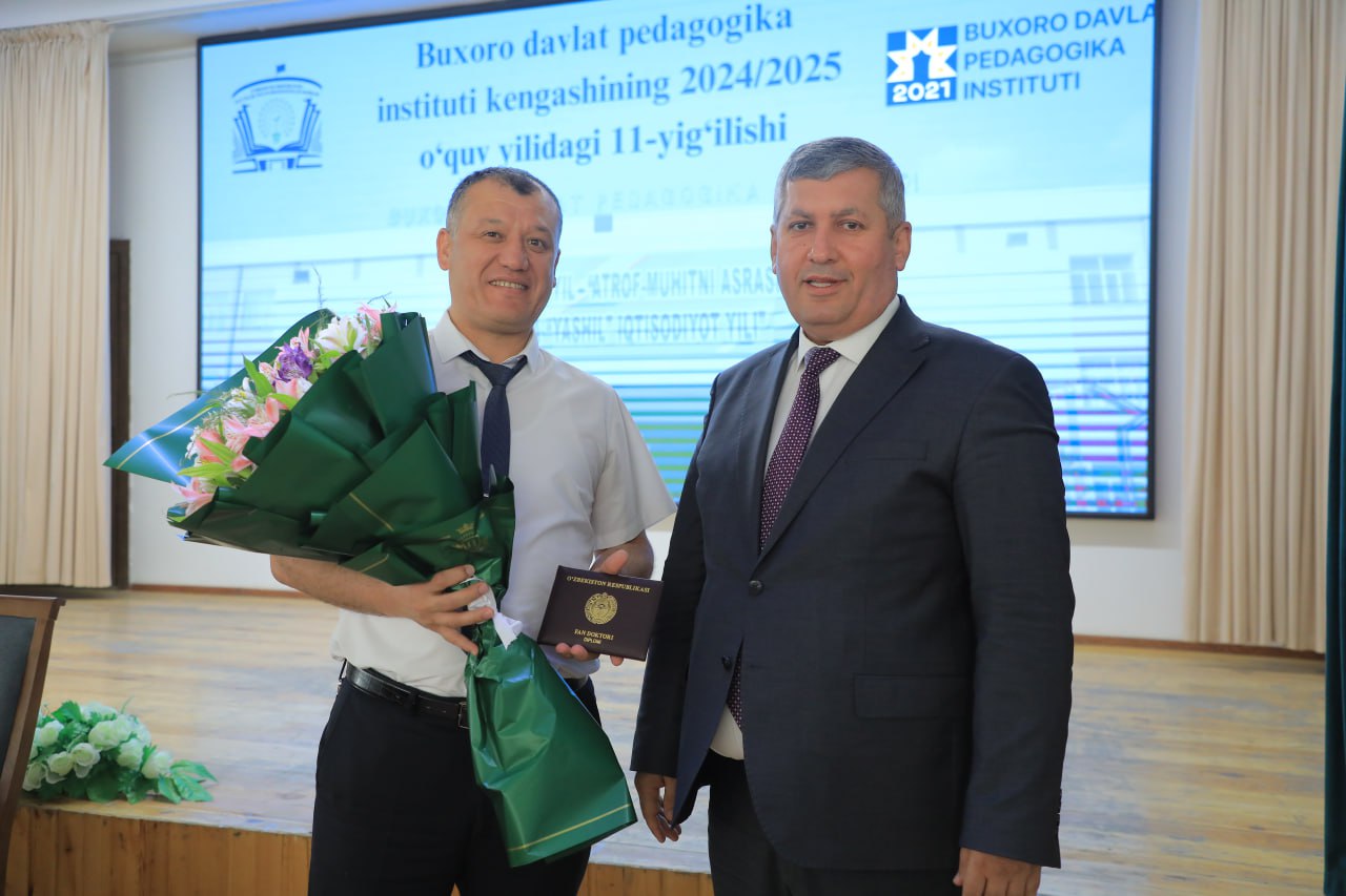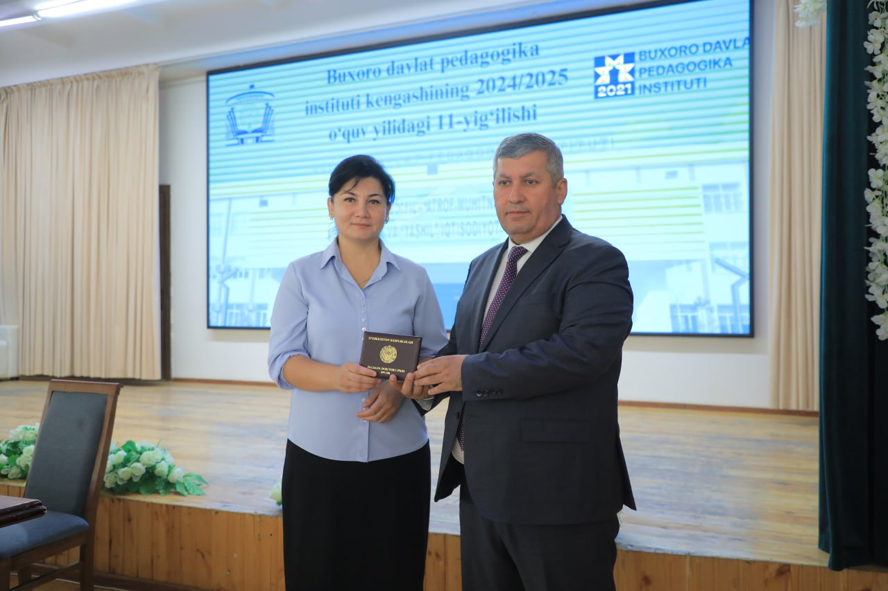 Buxoro davlat pedagogika institutining 11-yig'ilishida Oliy attestatsiya komissiyasining qaroriga asosan ilmiy daraja olgan bir qator professor-o'qituvchilar taqdirlandi
