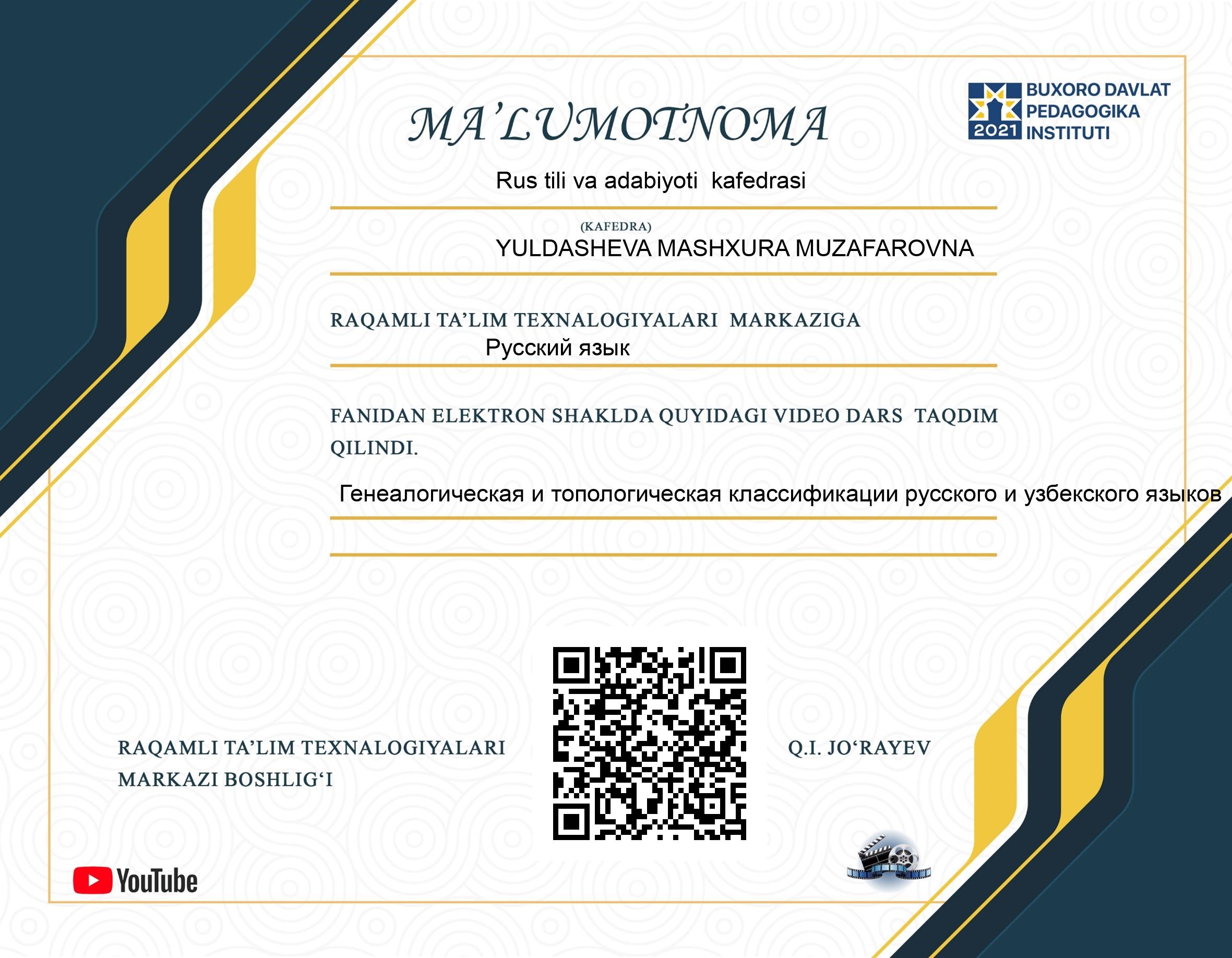 2024 y. -  h.v. - Buxoro davlat pedagogika instituti rus tili va adabiyoti kafedrasi dotsenti, PhD