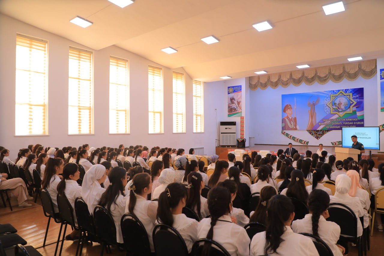 Buxoro davlat pedagogika institutida 1-kurs talabalari uchun institut ichki tartib-qoidalari bo‘yicha tanishtiruv tadbiri o‘tkazilmoqda. Unda talabalarga darslarga qatnashish, kiyinish madaniyati, ta’lim muassasasi hududida o‘zini tutish qoidalari hamda intizomiy talablar batafsil tushuntirildi.