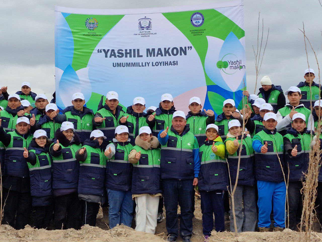 Buxoro davlat pedagogika institutining ko‘ngilli xodim va 100 nafar talaba-yoshlaridan iborat jamoasi Qoraqalpog‘iston Respublikasi Mo‘ynoq tumanida “Yashil makon” ummummilliy loyihasi doirasida bog‘ yaratish maqsadida tashrif buyurishdi.