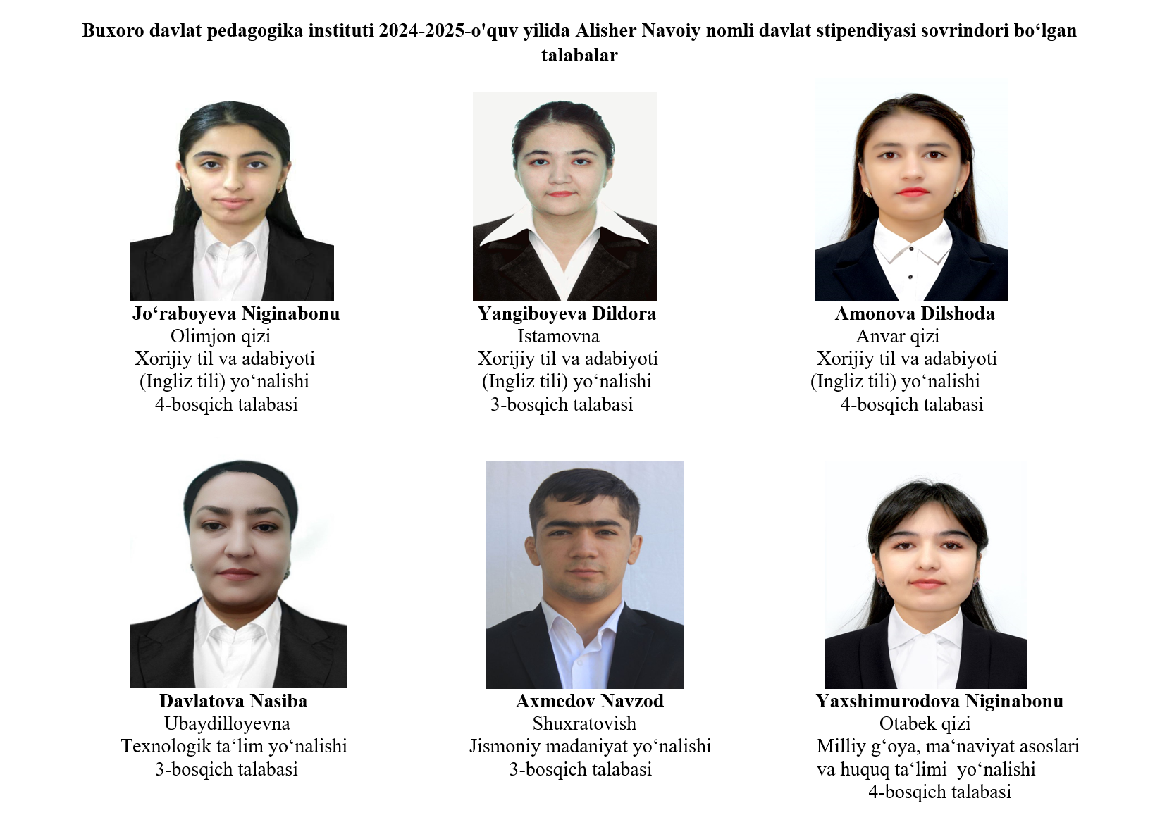 Buxoro davlat pedagogika institutining 10 nafar talabalari Nomdor davlat stipendiyalari sovrindorlari boʻldi.