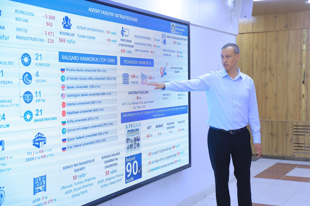Bugun Buxoro davlat pedagogika institutiga mashhur turkolog olim, Michigan universiteti professori Temur Xo‘ja Usmonxo‘ja o‘g‘li hamda UNESCOning Madaniy diplomatiya, boshqaruv va ta’lim yo‘nalishi rahbari, Anatolia Tech kompaniyasining bosh ijrochi direktori Selin Shenojak tashrif buyurib, institut faoliyati, ta’lim tizimi va ilmiy yo‘nalishlar bilan yaqindan tanishdilar. Mehmonlar institut jamoasi bilan suhbatda Buxoro pedagogika maktabining boy tarixiy merosi, hozirgi kundagi ilmiy-tadqiqot ishlari va kelajak rejalari haqida ma’lumot oldilar. Shuningdek, professorlar institut o‘quv auditoriyalari, jadidlar markazi, laboratoriya va ilmiy markazlarni ko‘zdan kechirdilar. Tashrif doirasida o‘tkazilgan samimiy suhbat va muloqotlarda ta'limga berilayotgan eʼtibor, ilmiy va amaliy loyihalarni birgalikda bajarish, institutda UNESCOning Ta'lim boʻyicha filialini ochish, o‘zaro ilmiy aloqalarni rivojlantirish bo‘yicha fikr almashildi.