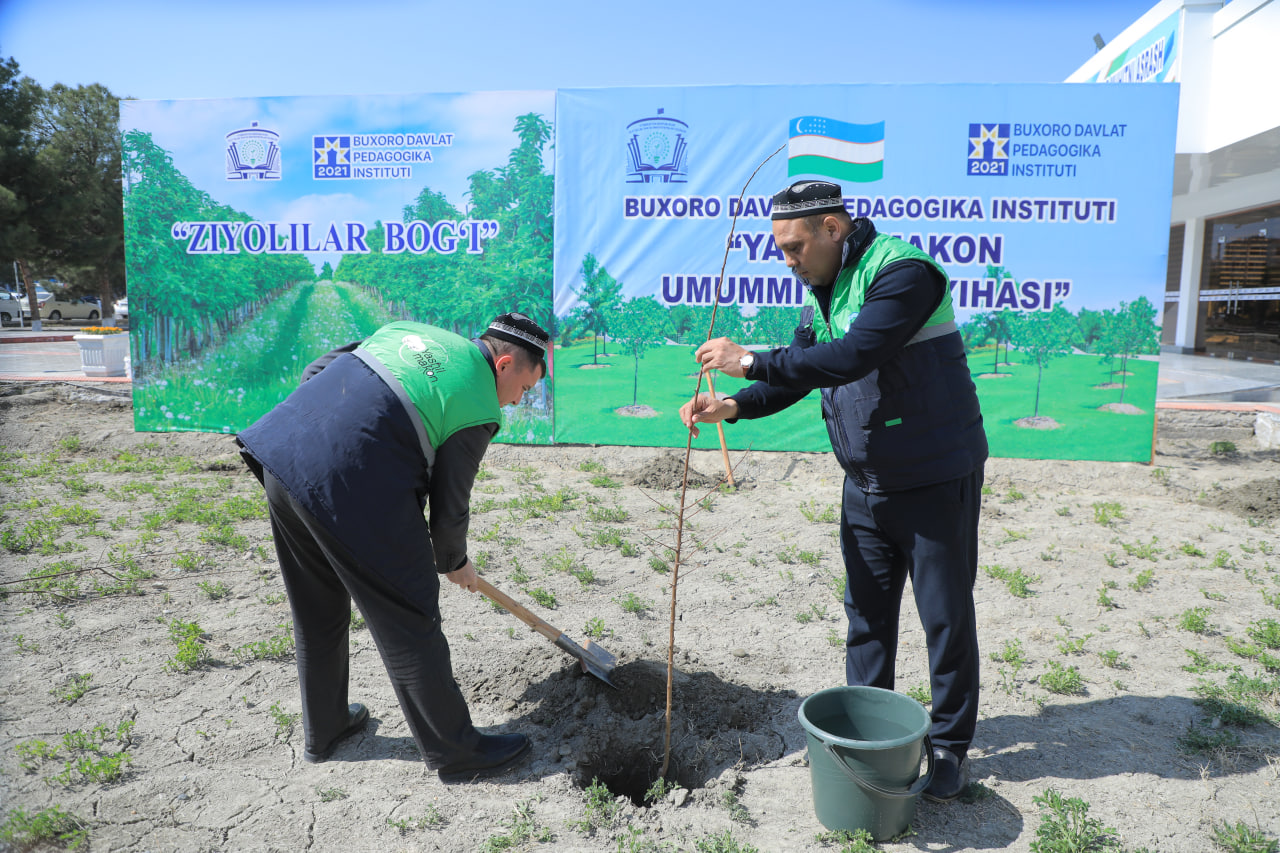 Bugun Buxoro davlat pedagogika institutida “Yashil makon” umummilliy loyihasi doirasida xodimlar, professor-o’qituvchilar, hamda talaba-yoshlar tomonidan yangi mevali va manzarali ko'chatlar o'tqazildi.